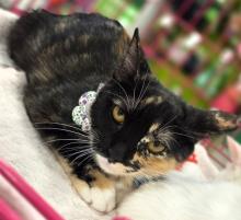 I am a sweet girl who loves to play hide and seek. When I am ready, I'll even come out for cuddles. My sister is Misty T, another tortie, and we play together but can be adopted separately as long as you have a kitty friend for me.