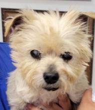 My life is getting so much better now that I can see and am staying in a nice foster home. I was in deplorable conditions with 4 other dogs and we all were rescued by Loving Arms. I had cataracts back then but Loving Arms took me to a wonderful eye doctor and he was able to operate on my cataracts and now I have a whole new outlook on life and no longer walk around in circles but have a blast walking all around my big backyard. I am considered a special needs doggy as I will need to take eye drops for the rest of my life and see an eye doctor every 6 months.